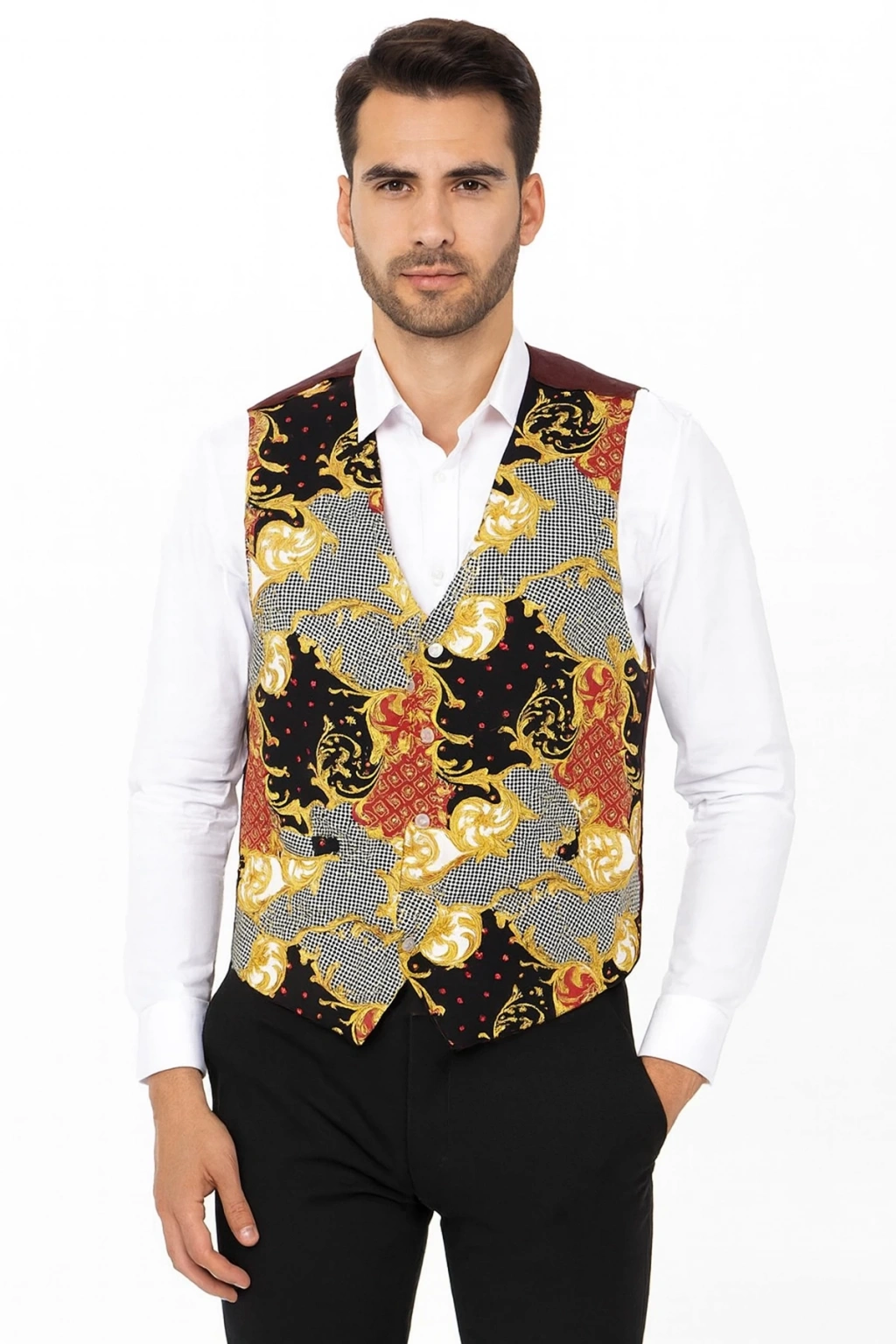 Hizmet sektöründe çalışan profesyoneller için tasarlanan bu şal desenli garson yeleği, şıklığı ve işlevselliği bir arada sunar. Astarlı yapısı sayesinde gün boyu konfor sağlar ve iki kullanışlı cebiyle pratiklik kazandırır. Zarif şal deseni, klasik ve modern tarzı harmanlayarak estetik bir görünüm sunar. Dayanıklı kumaşı ve özenli işçiliği ile uzun ömürlü kullanım vadeder. Restoran, kafe ve otel gibi işletmelerde çalışan garsonlar için ideal bir tercihtir.
