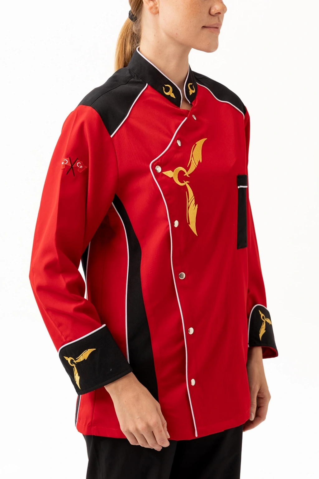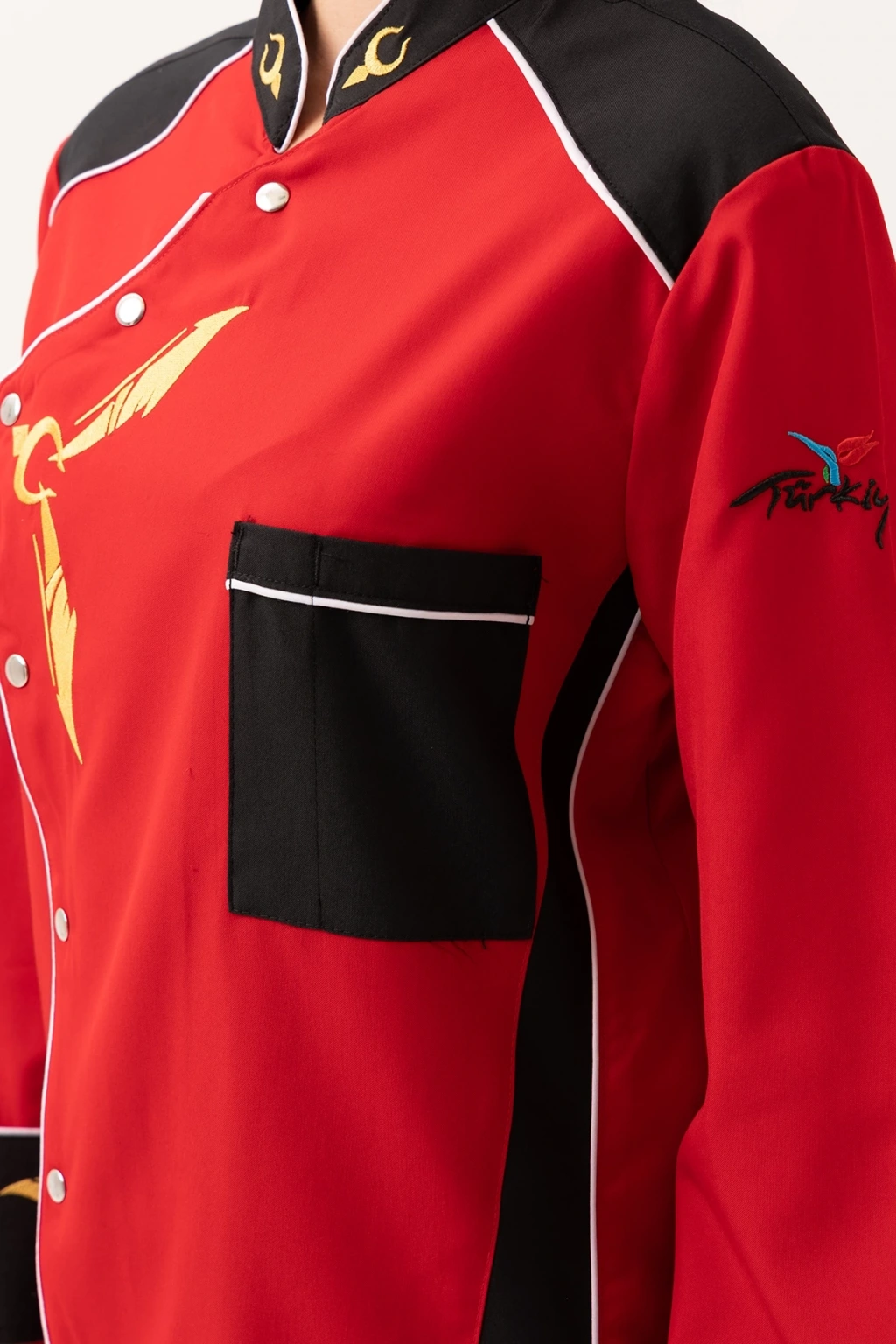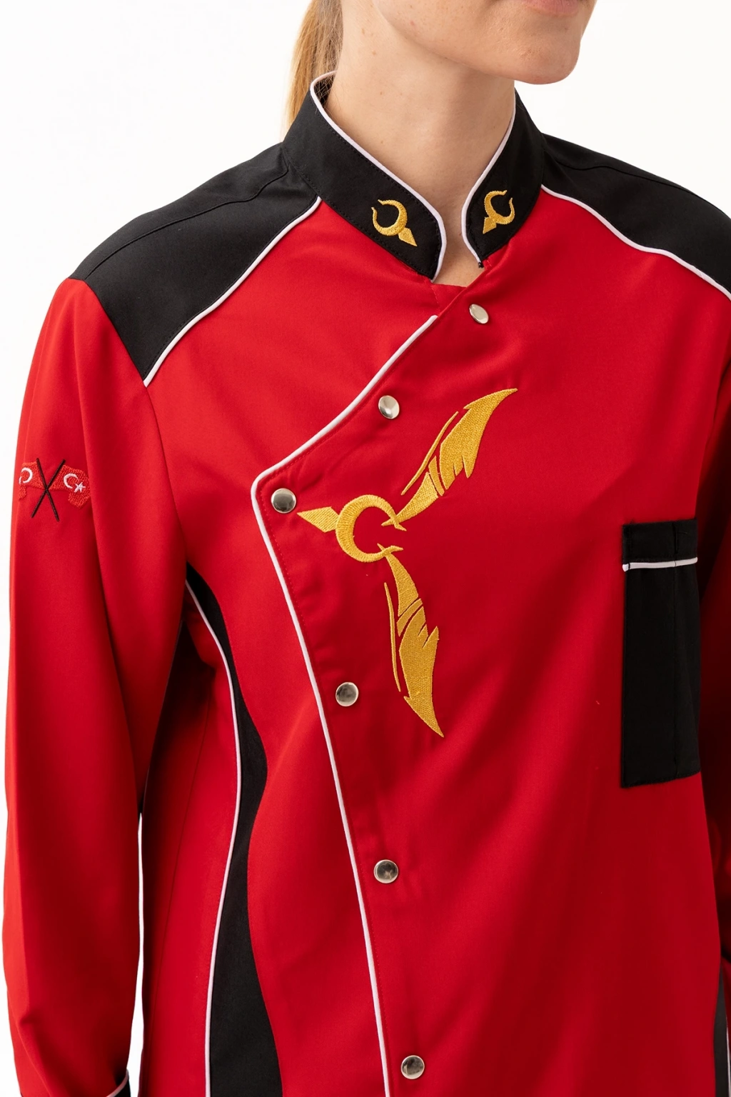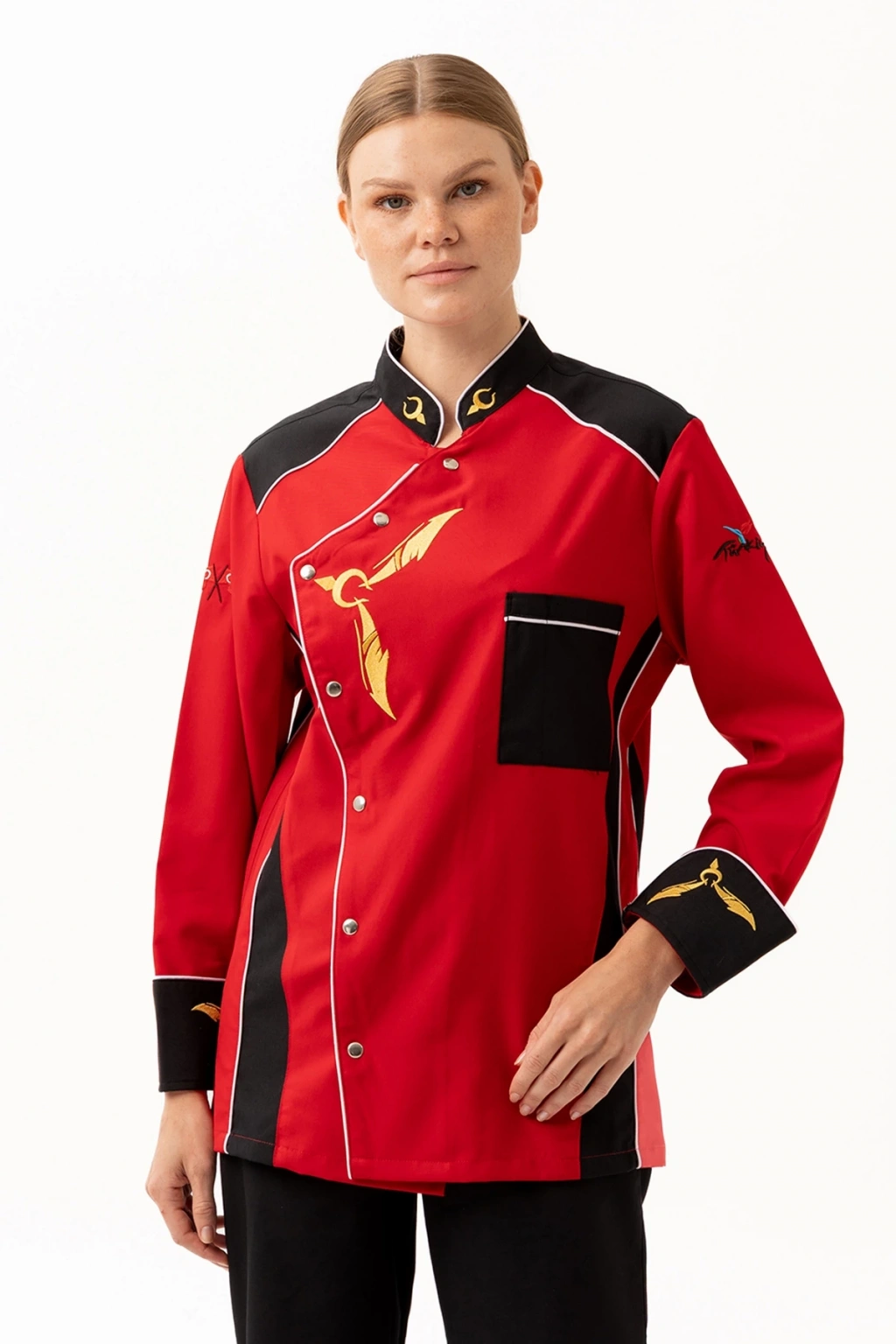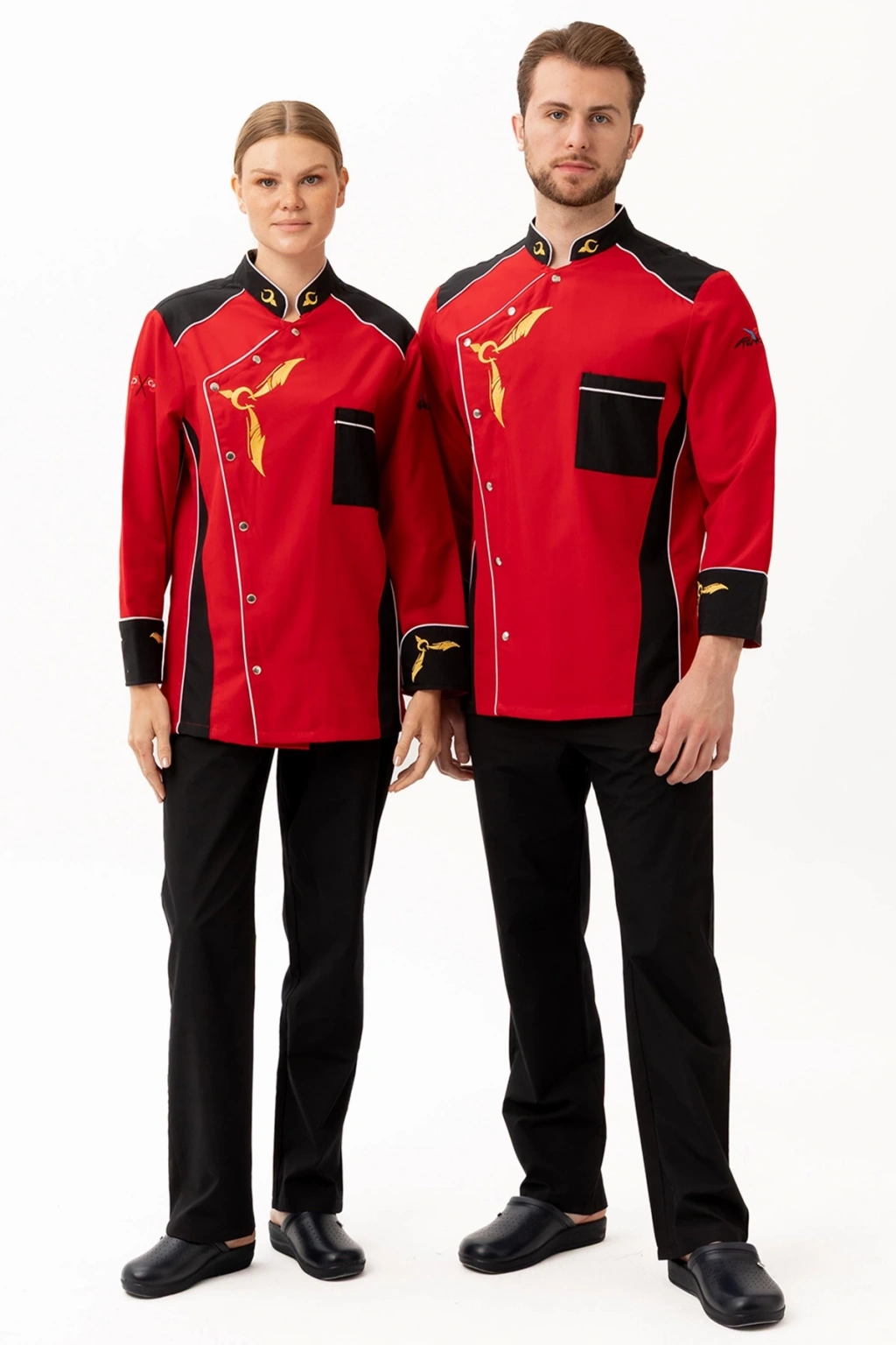 Crenata Aşcı Ceketi - UKE015-403.024.ALPAKA185 Crenata Aşçı Ceketi, göz alıcı kırmızı ve siyah renk kombinasyonu, altın sarısı şef motifleri ve özgün tasarımıyla mutfaklarda fark yaratmak isteyen profesyoneller için üretildi. Hem kadın hem erkek model seçenekleriyle takım ruhunu korurken, yüksek performans kumaşıyla uzun saatler boyunca konfor sunar. Ürün Avantajları: