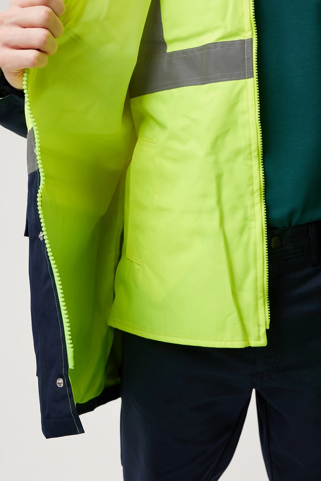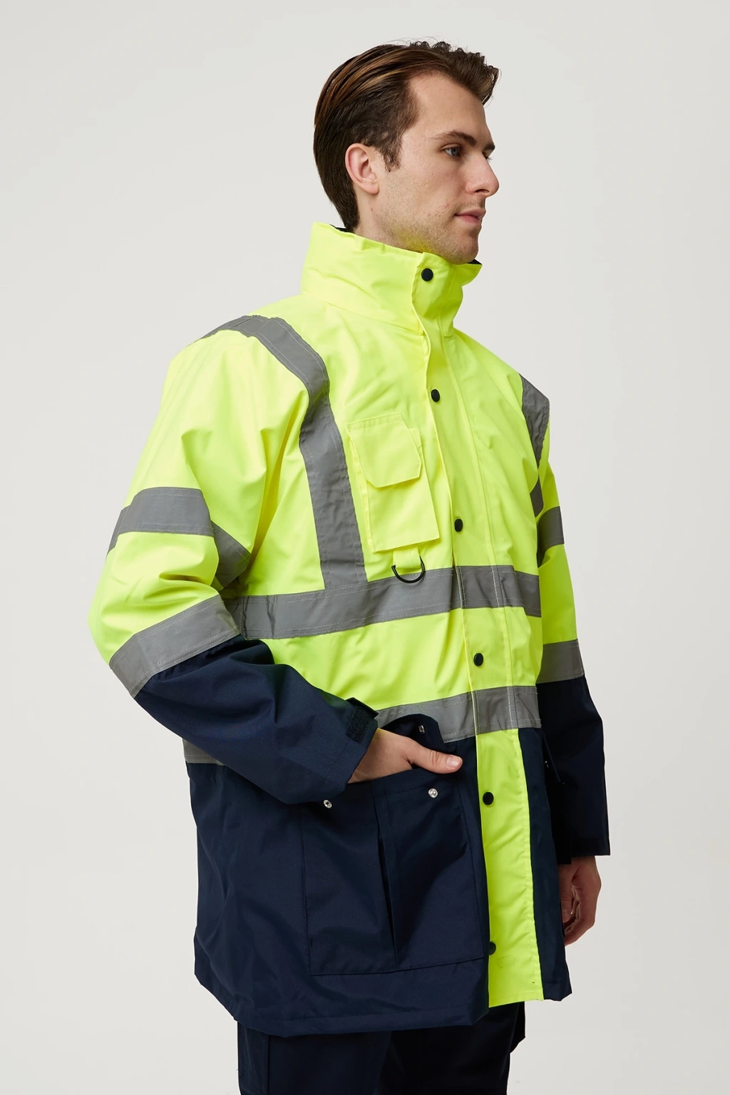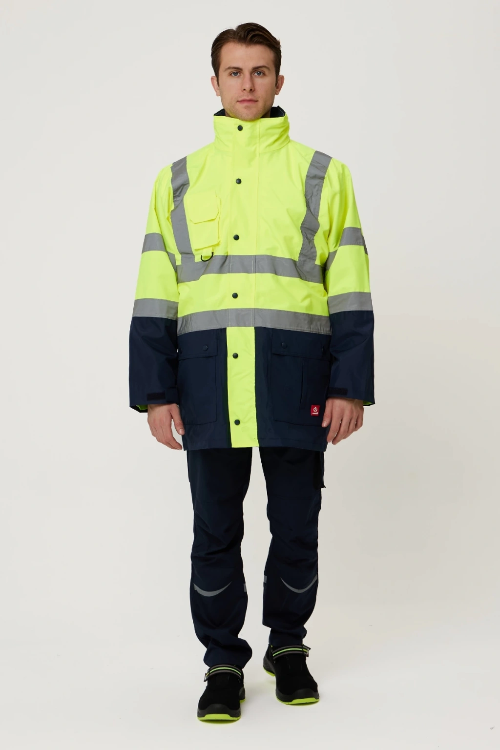 Eradium 5N1 Parka - UKU054-411.110.OXFORD Yüksek Görünürlüklü, Su Geçirmez, İş Güvenliği Parkası, Reflektif Şeritli Bu yüksek görünürlüklü İş Güvenliği Parkası ile her koşulda güvende ve kuru kalın! Dayanıklı ve su geçirmez Oxford kumaşından üretilmiş bu ceket, düşük ışık koşullarında görünürlüğü artırmak için ön ve arkada reflektif şeritlerle donatılmıştır. 5 farklı kullanım seçeneği sunan bu çok yönlü tasarım, her koşulda işinizi güvenle yapabilmenizi sağlar. Katlanabilir kapüşon, alet ve cihazlar için çoklu cepler, çıkarılabilir kimlik cebi ve ayarlanabilir manşetler gibi pratik özellikleri ile işlevsellik ve güvenlik bir arada sunulmaktadır. Ürün Avantajları: