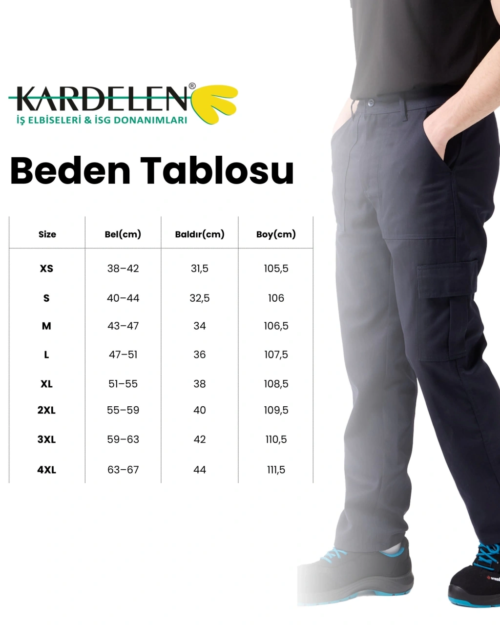 Galanthus Kışlık Pantolon - UKE011-003.011.GAB7/7 Bu kışlık iş pantolonu, sert hava koşullarına karşı koruma sağlamak için tasarlanmıştır. %100 pamuk gabardin kumaştan üretilmiş olup, nefes alabilir yapısı sayesinde konfor sunarken dayanıklılığı ile uzun ömürlü kullanım sağlar. Yarı elastik bel yapısı, belinize tam oturarak hareket özgürlüğü sunar. Çoklu cep alternatifleri, iş sırasında gerekli malzemeleri kolayca taşımanıza olanak tanır. Sağ yanda kumpas cepli, sol yanda kargo cepli ve arkada tek düğmeli cepli tasarımı ile işlevselliği artırılmıştır. Ürün Avantajları: