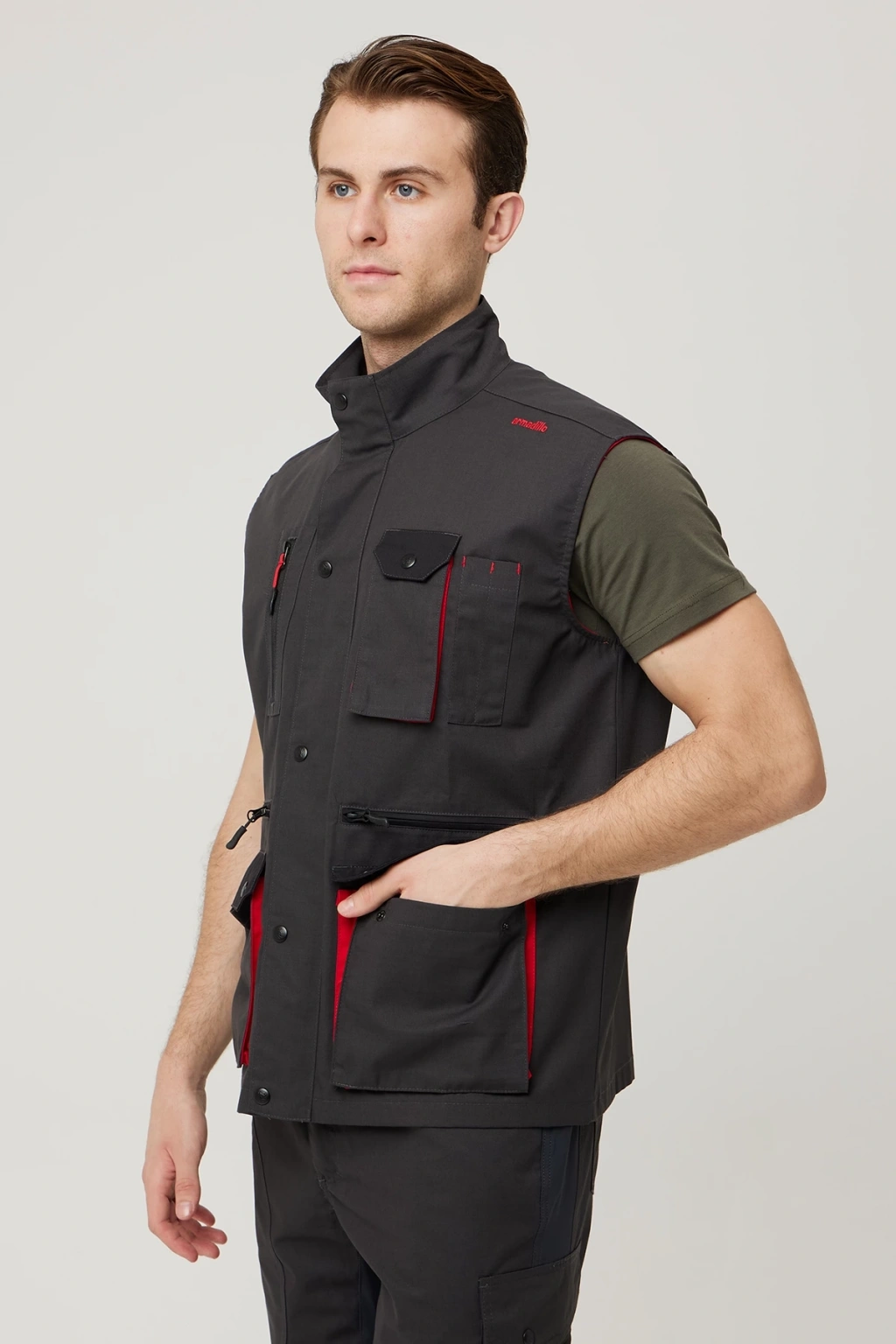 Armadillo Galium Yelek - UKE014-104.001.RIPSTOP Bu çok cepli iş yeleği, zorlu iş koşulları için özel olarak tasarlanmış Ripstop kumaşı ile ekstra dayanıklılık sağlar. Yırtılmalara ve aşınmalara karşı dirençli yapısı sayesinde uzun ömürlü kullanım sunar. Fermuarlı ve düğmeli çoklu cepler, aletler ve kişisel eşyalar için geniş ve güvenli saklama alanları sağlar. Yüksek yakalı tasarımı, soğuk hava koşullarında koruma sağlarken, modern ve profesyonel görünümü ile iş sahasında şıklığı bir araya getirir. Ürün Avantajları