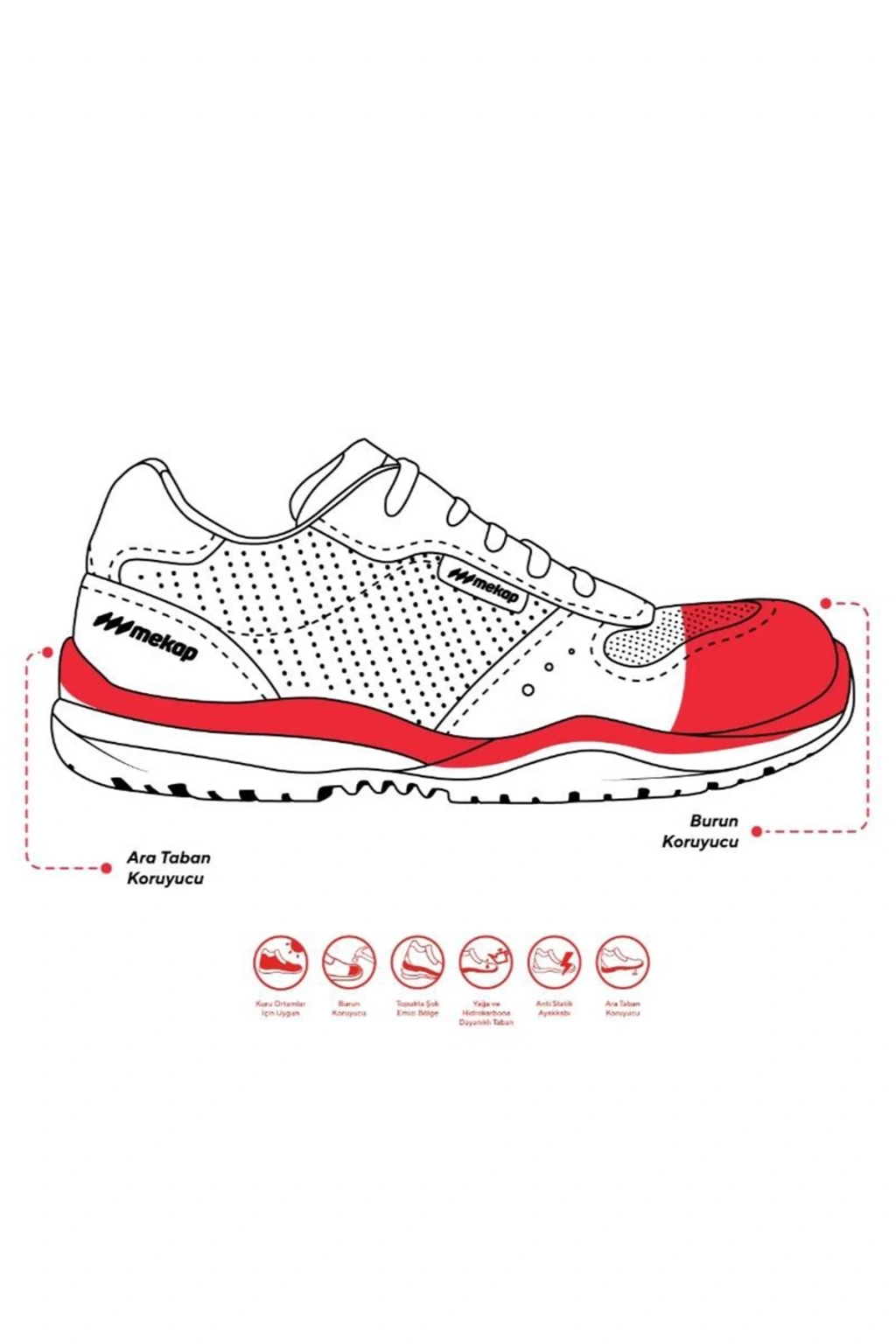 Statik elektrik birikimini engellerken topuk bölgesindeki darbe emici yapı ile uzun süreli kullanımda konfor sunar.