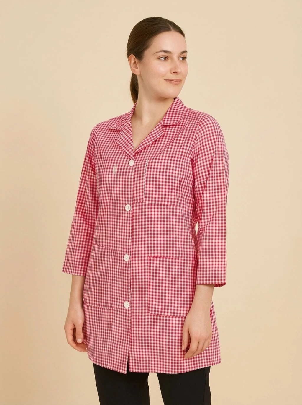 Klasik pötikare deseniyle hem profesyonel hem de zarif bir görünüm sunan bu kadın çalışma önlüğü, iş hayatında tarzından ödün vermek istemeyenler için tasarlanmıştır. Hafif ve nefes alabilen kumaşı sayesinde uzun mesai saatlerinde bile rahatsızlık yaratmaz; dayanıklı dokusu ise günlük yoğun kullanımda formunu korur.