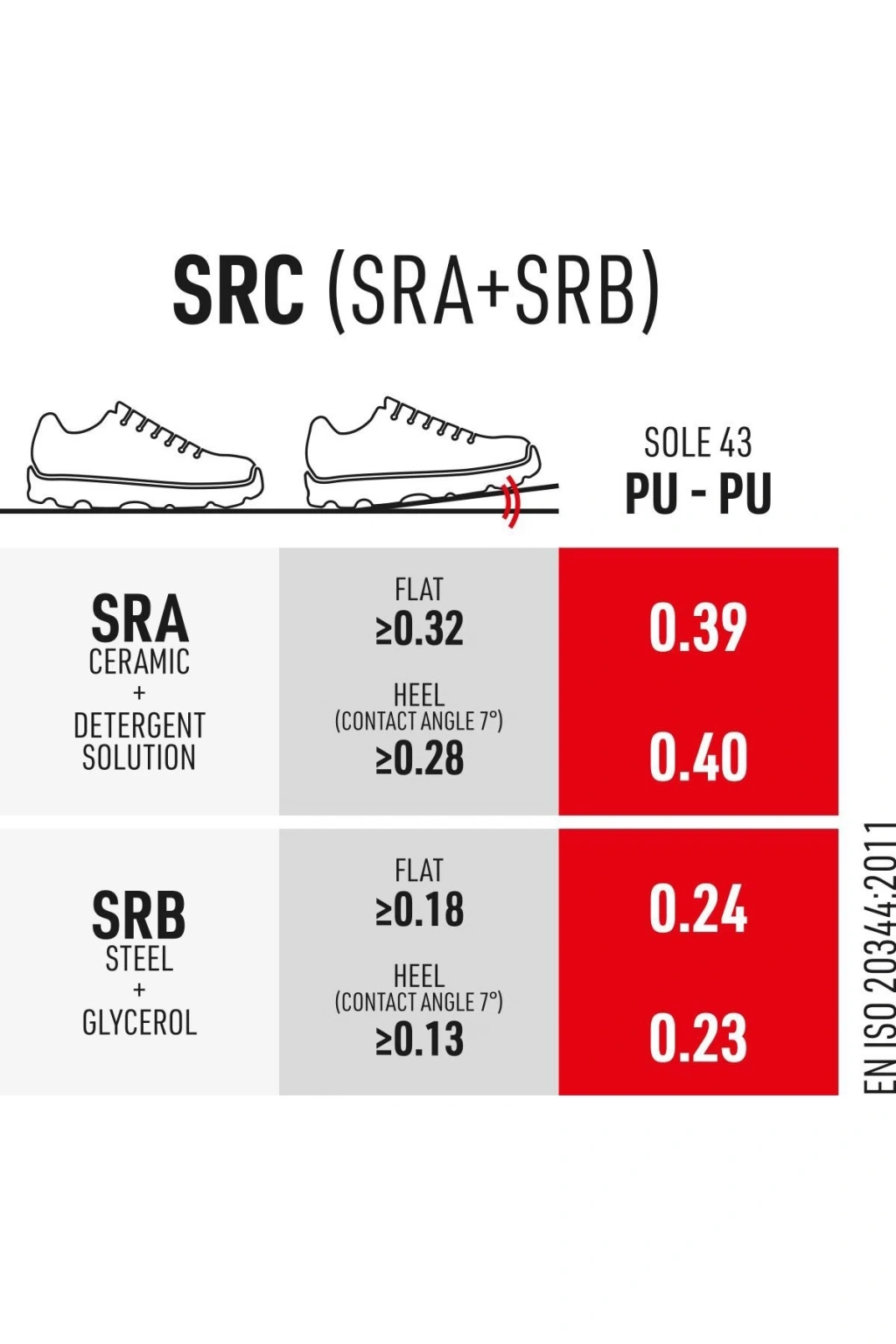 Zemin testlerinde yüksek kaymazlık oranlarına sahiptir:SRA düz yüzeyde 0.39 / topukta 0.40