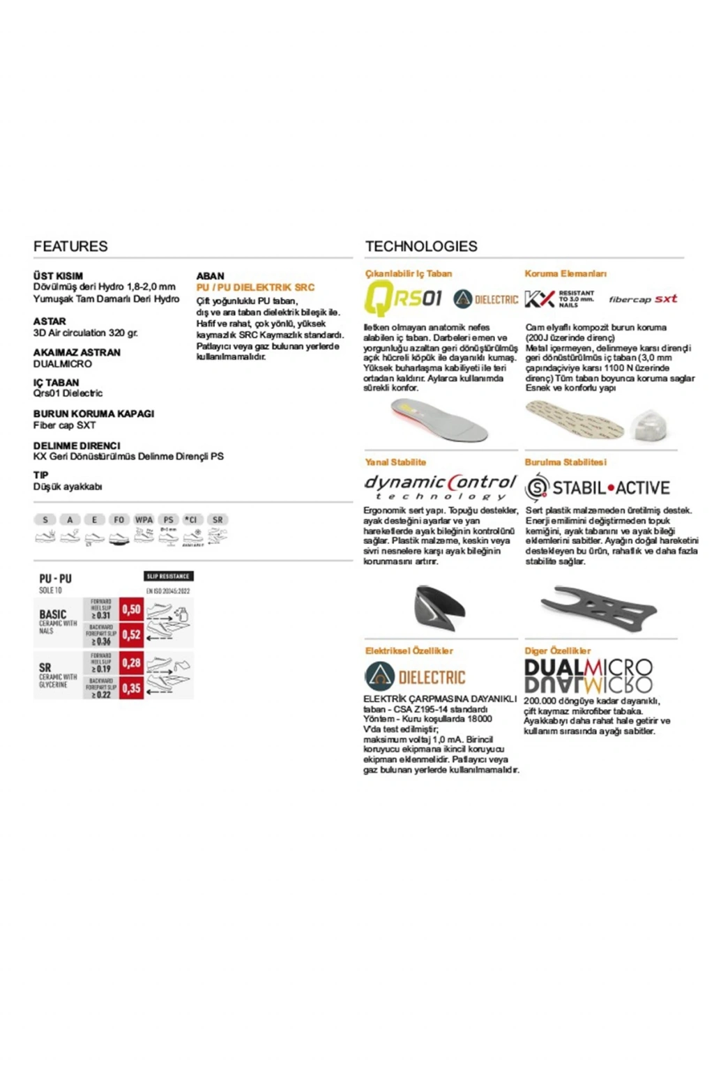Taban: PU / PU Dielektrik SRC taban, yüksek elektriksel direnç ve kaymazlık sağlar.