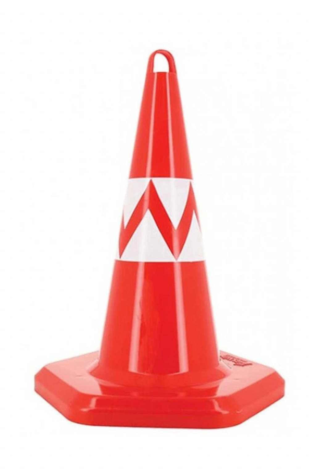 Dayanıklı plastik malzemeden üretilmiş olan koni, hava koşullarına dayanıklıdır ve uzun süreli kullanım için uygundur. Yüksek görünürlüklü kırmızı renk ve reflektif şeritler, gece ve gündüz fark edilmeyi kolaylaştırır.